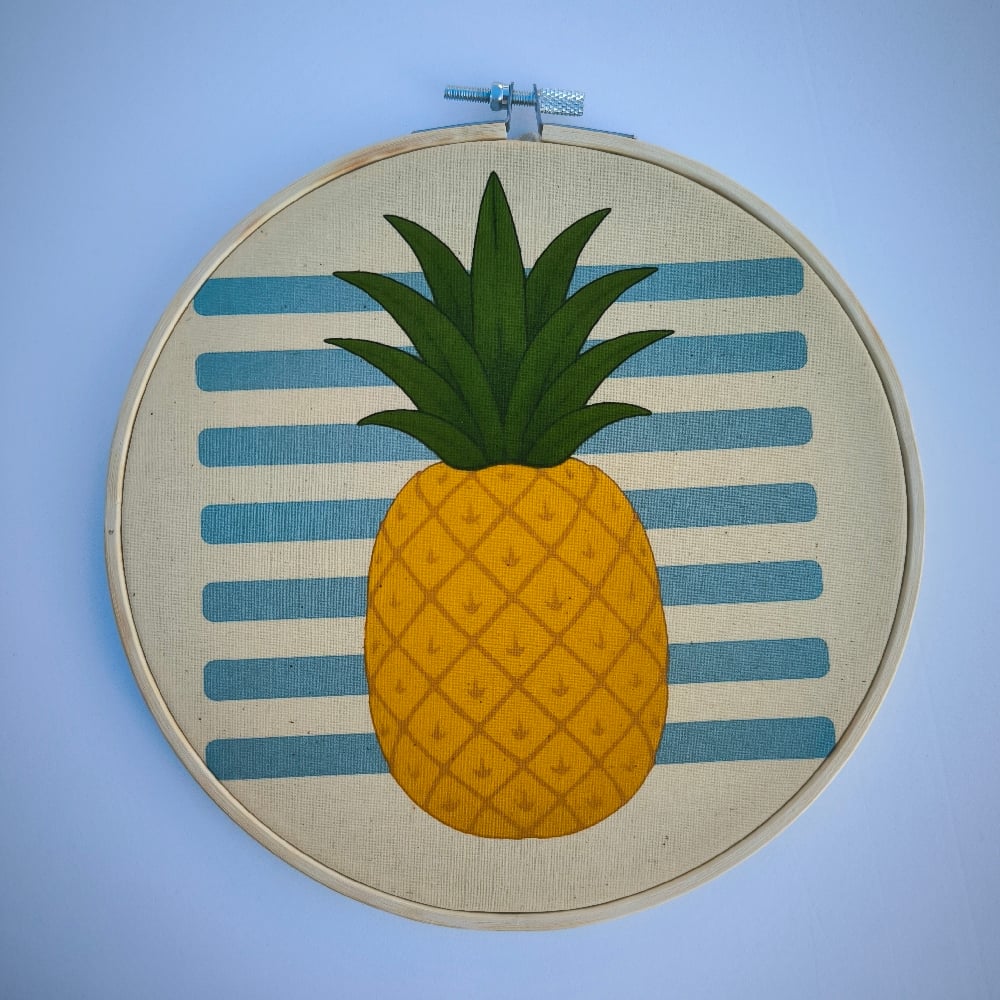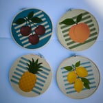 🍒🍑🍍🍋 Decora tu casa con el color del verano: set de bastidores frutales sobre algodón orgánico